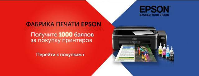 Акция Озон - "1000 баллов за покупку принтеров Epson"