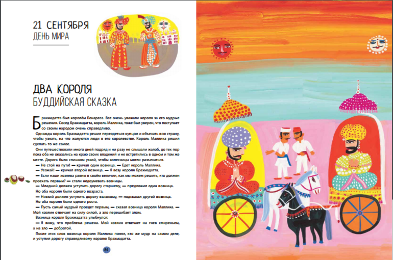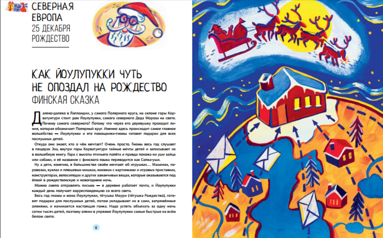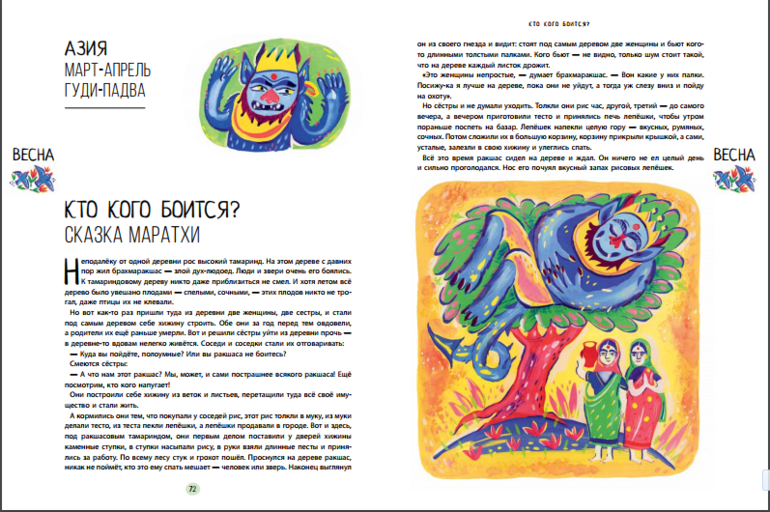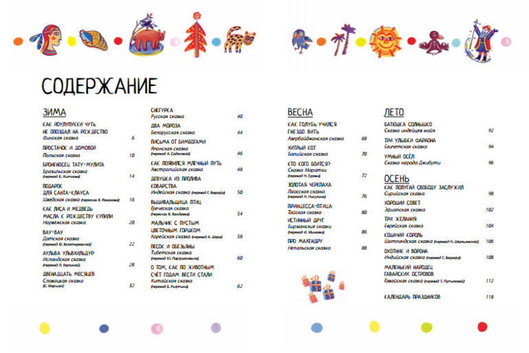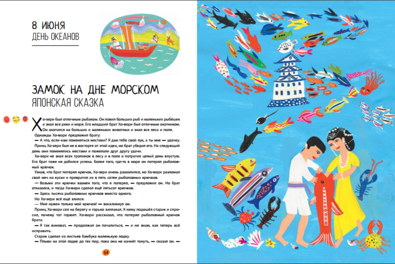 Собранные в этой книге 52 сказки и истории на каждую неделю года дают ответы на этот вопрос. Каждая сказка посвящена какому-нибудь празднику. Так, на Пасху можно прочитать канадскую сказку "Корзинка яиц", на Масленицу узнать о похождениях сбежавшего блина, а в День океанов открыть японскую сказку про замок на морском дне… Вперёд, в сказочную кругосветку!
