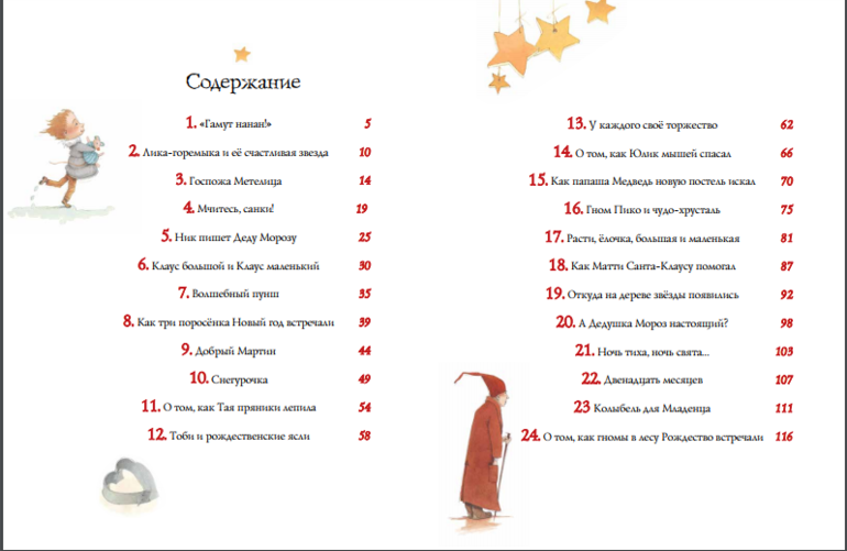 Когда приближается Новый год, всё становится возможным, ведь это время исполнения желаний. Семейство гномов варит в лесу волшебный напиток, госпожа Метелица укрывает землю снегом, а дети с нетерпением ждут Деда Мороза. Бригитта Венингер и Ева Тарле создали волшебный сборник из 24 зимних историй, каждая из которых полна загадок и чудес. Для детей 4-8 лет.