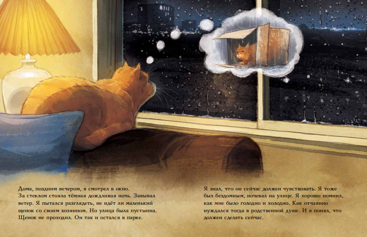 Адаптированная для детей версия мировых бестселлеров Джеймса Боуэна "Уличный кот по имени Боб" и "Мир глазами кота Боба". Общий тираж книг о Бобе составил более 3 миллионов экземпляров в 30 странах. Неравнодушное отношение рыжего кота к тем, кто попал в беду, помогает крохотному потерявшемуся щенку найти свой дом. Основано на реальных событиях. Для дошкольного и младшего школьного возраста.