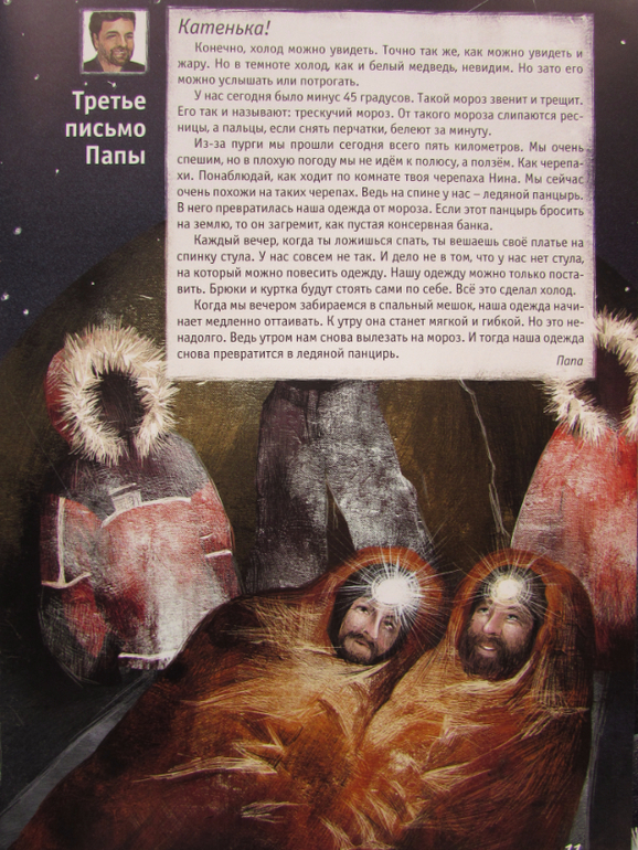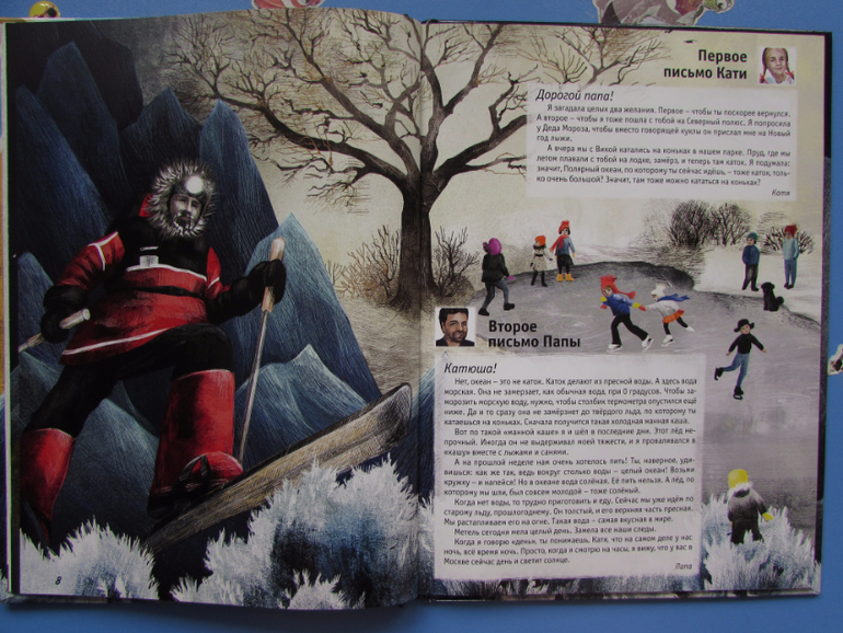 Основу книги «Катя, папа и Северный полюс» составляют письма Папы (Матвей Шпаро) и его маленькой дочери (Катя).