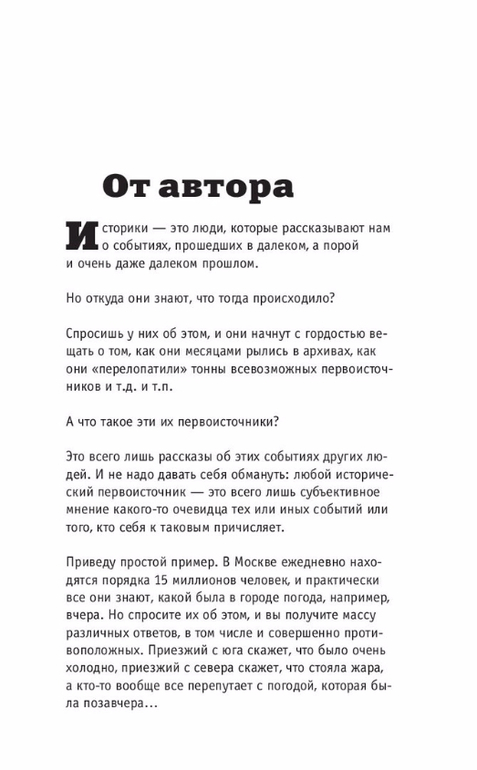 Спросишь у них об этом, и они начнут с гордостью вещать о том, как они месяцами рылись в архивах, как они "перелопатили" тонны всевозможных первоисточников и т.д. и т.п. А что такое эти их первоисточники? Это всего лишь рассказы об этих событиях других людей. На основании одних и тех же "свидетельств очевидцев" они могут сложить совершенно разные картины.