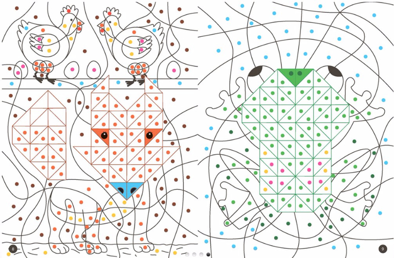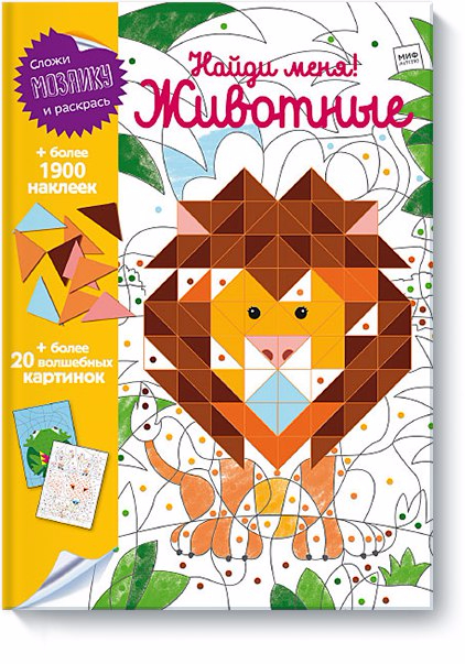 Эта книга - 2-в-1: раскраска + мозаика из наклеек. Используя их, малыш создаёт разноцветный рисунок и находит животное, спрятавшееся на странице. Это веселая игра и полезное занятие, развивающее моторику, любознательность, воображение и творческое мышление.