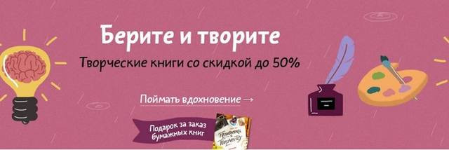На этой неделе в каждый заказ от 1500руб бумажных книг с доставкой мы положим книгу «Привычка к творчеству», которая поможет сделать творчество частью жизни.