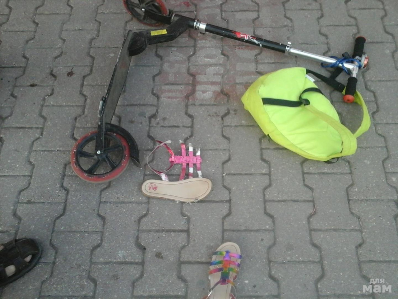 Гуляли в Сокольниках, нога соскользнула и воооот, новый пооовооорооот)) Домой ехали по метро босяком и окружающие на нас смотрели кто с улыбкой, а кто и как на страааанных людей с босоногой девочкой 😂