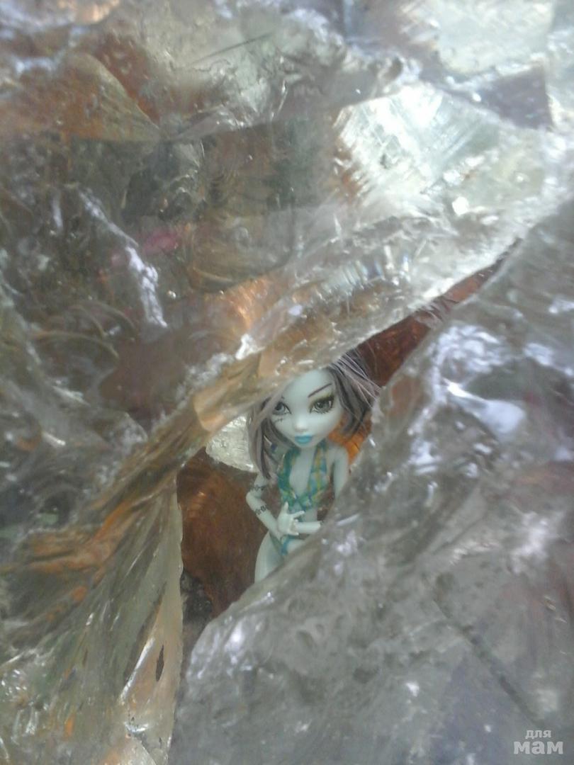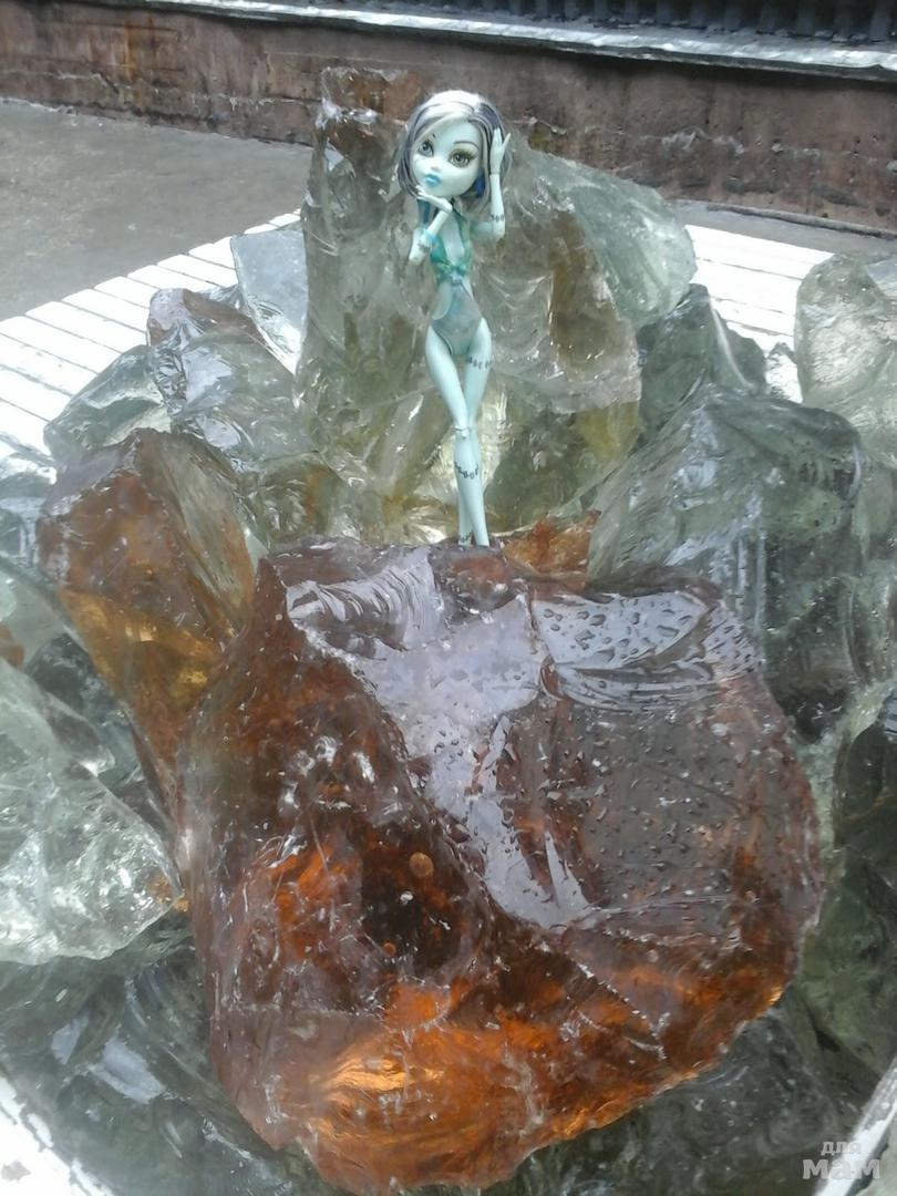 Фото сессии для кукол. Тут стеклянные глыбы на деревянных поддонах - типа арт объект