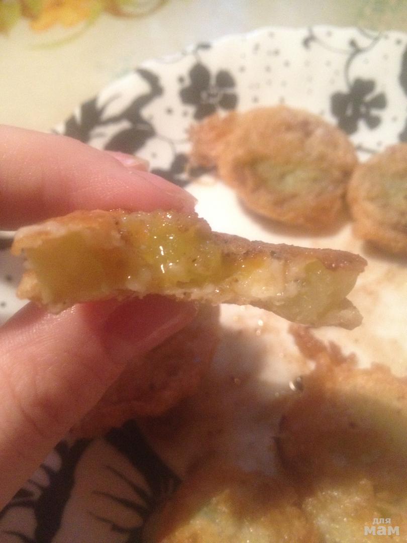 рецептов полно, но суть одна, итак в одной миске взбить яйцо можно яйцо с молоком, в другой миске смешать муку, соль, перец, панировочные сухари и специи по вашему вкусу. Обмакиваем в муке потом во взбитом яйце и жарить. На вкус что-то напоминает жаренный баклажан с помидором. Мне понравилось, кисленькие жаренные пирожки