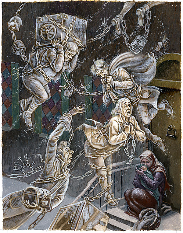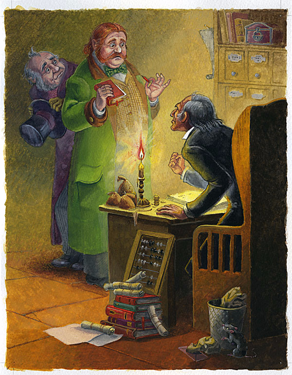 О таком неожиданном преображении человека хочется узнать все подробности. Такую возможность вместе с текстом Диккенса дают красочные иллюстрации художника Максима Митрофанова, который в своих рисунках постарался не упустить ни одного персонажа, ни одну важную деталь этой волшебной рождественской истории.