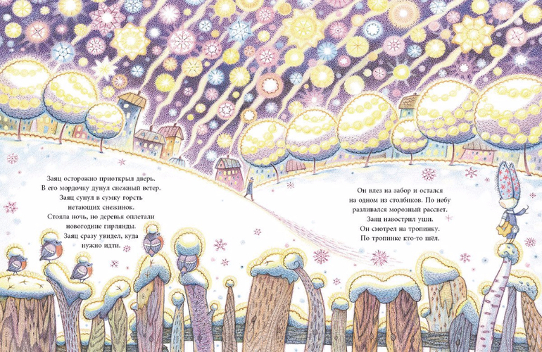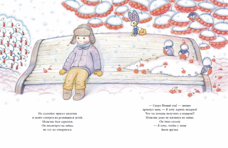 Новый год - праздник, который соткан из волшебства. Ну а какой праздник без подарков? Подарить то, что действительно нужно, может новогодний игрушечный заяц - в его сумочке есть маленький прыгучий мячик, карандаш, семь шоколадных монет и семь кружочков конфетти, серебристая дождинка и несколько слезинок Снегурочки. О том, что совершать чудеса очень просто, поведает добрая и трогательная новогодняя история Натальи Евдокимовой, оживающая в сказочных иллюстрациях Светланы Бушмановой.