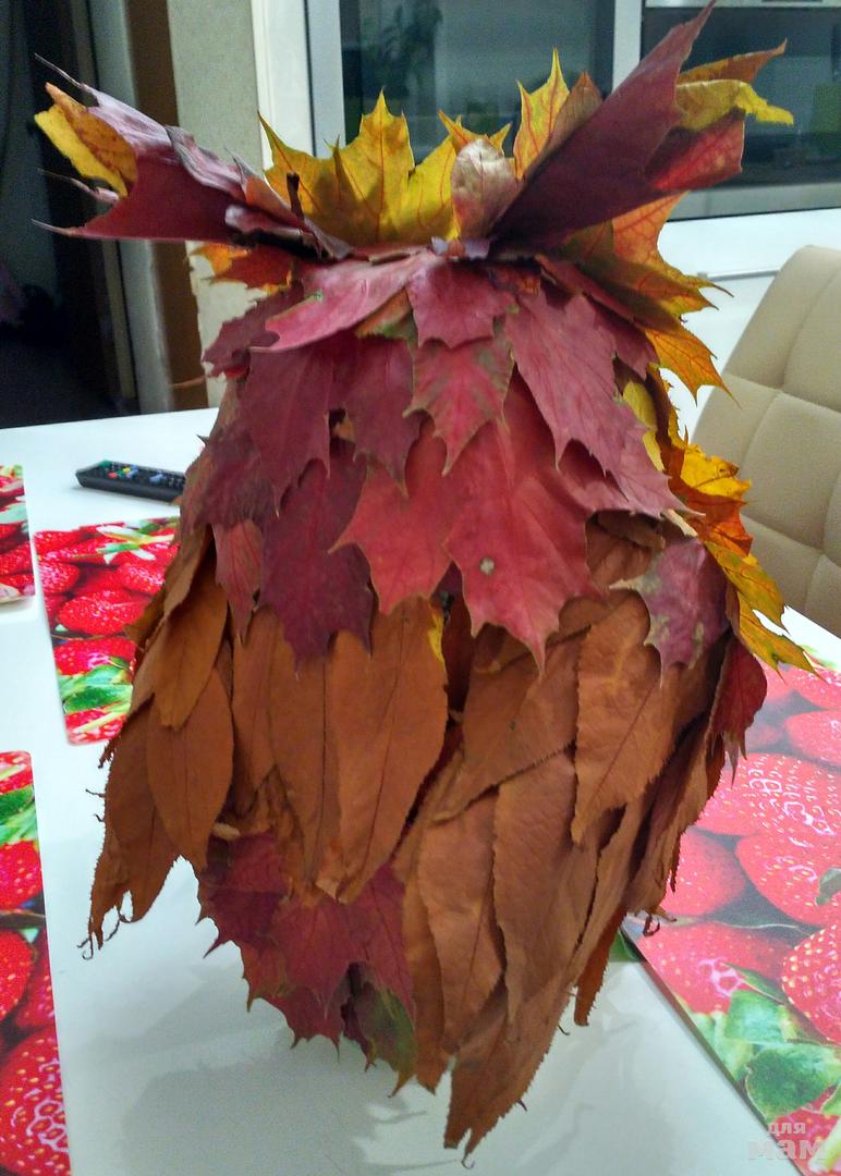 Уже как 2 недели родители несут осенние поделки в сад. У нас как то все не складывалось,т о времени нет, то погода подводила со сбором материала.И о чудо , настал воскресный, солнечный, теплый денёк.Мы пошли собирать листики. Все было замечательно ровно до вечера( у ребенка поднялась темпиратура( Но даже в бреду жара она все время повторяла:"мама мы будем делать сову?"И вот сегодня нам немного лучше, и мы сделали ЭТО ЧУДО😊