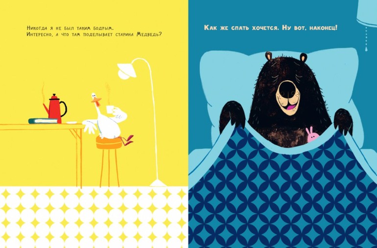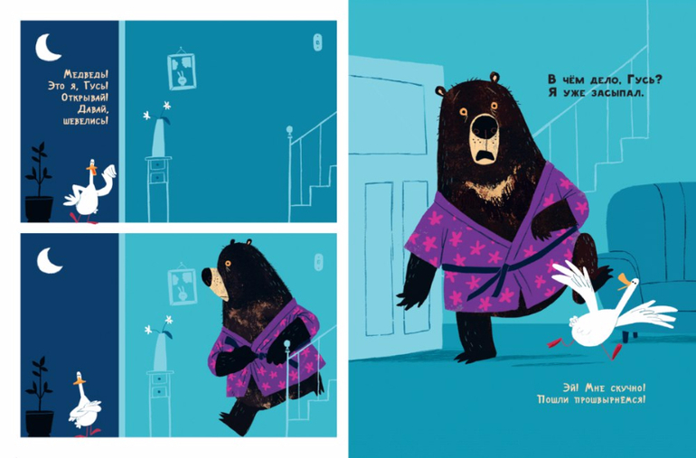 Обнимая своего плюшевого розового кролика, Медведь готовится сладко заснуть. Но у его назойливого соседа Гуся совсем другие планы на вечер: посмотреть кино, поиграть на гитаре, испечь печенье - и все это, конечно, в компании своего друга Медведя. Удастся ли Медведю заснуть этой ночью и что еще придумает этот неугомонный Гусь?