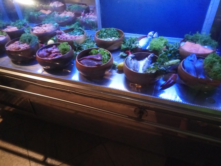 Всегда из мясного: индейка, баранина, телятина, курица, ягненок. Несколько видов рыбы. Всегда.