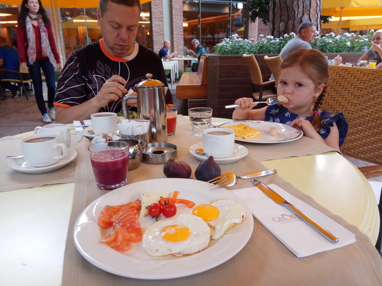 Заказывали в номер мы всегда в 18:30, Анюта отужинает на балкончике, на свежем воздухе, нормальной едой).