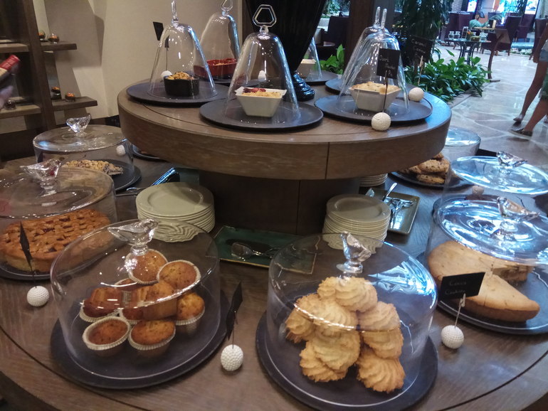 Есть кашки, мясные нарезки, сыры, мюсли, орехи, выпечка, фрукты, мед в сотах, варенья-джемы, вкуснейший капучино или латте...всего достаточно и главное вкусно!