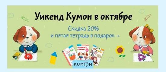 С 27 по 29 октября скидка на все тетради Кумон — 20%. А еще — подарок за покупку 4 тетрадей серии.
