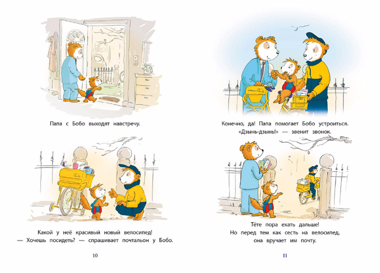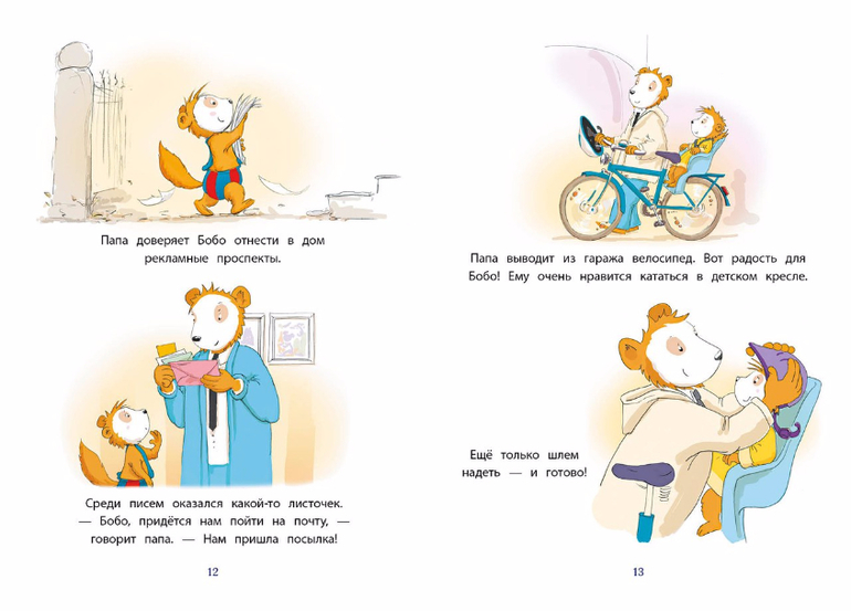 Под этой обложкой - четыре истории в картинках. Вот Бобо идёт гулять в лес, и папа показывает ему удивительных зверей и красивые растения: белка, олень, шишки - ничего этого соня прежде не видел. Вот Бобо хочет порадовать маму и вместе с папой готовит ей ужин при свечах - оказывается, это так здорово! А вот малыш распаковывает подарки, найденные под ёлкой. В конце каждой главы Бобо засыпает, а потому эта книжка идеально подходит для чтения на ночь.
