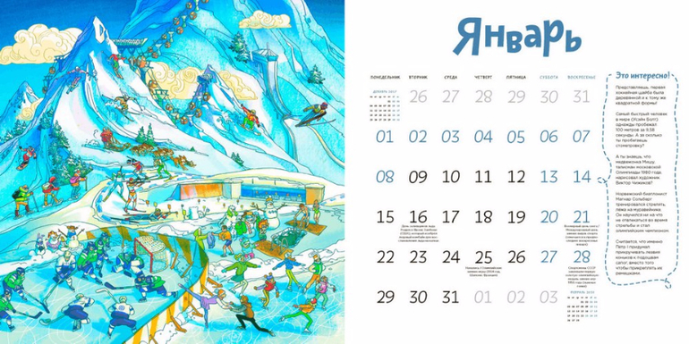- Спортивные события, народные приметы, покорение подводного мира - столько интересного ещё никогда не было на страницах одного календаря.