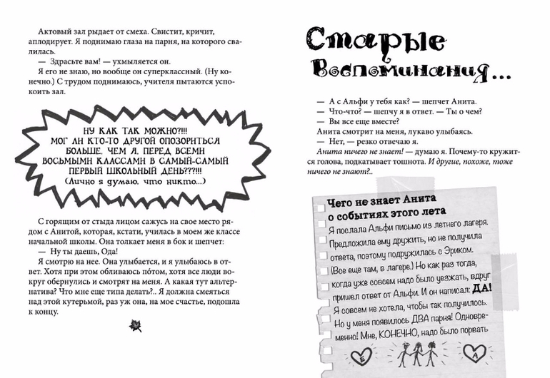 Учителя - куда строже любимого Каллестада. Одноклассницы - думают, что они взрослые и крутые. Мальчишки, особенно старшие, оценивающе рассматривают. Самое ПРОТИВНОЕ - над Одой все вечно смеются: за дружбу с семиклассницей Хелле, за самодельные приглашения на вечеринку, за то, что на праздник она зовет только девчонок… Но всё вдруг ПЕРЕВОРАЧИВАЕТСЯ, когда у нее появляется парень! Не почти совсем, как было с Альфи и Эриком (даже не спрашивайте!!!), а самый настоящий парень - Ларс, которого вся школа считает крутым! Но нравится ли он ей на самом деле? Жизнь героини похожа на бег по лабиринту: то не знаешь, куда повернуть, то сворачиваешь в тупик, и карты никакой нет, и Google ничего не подскажет. Плюс в этом только один: скучно не бывает, а дни не проходят даром! Или это уже два плюса?