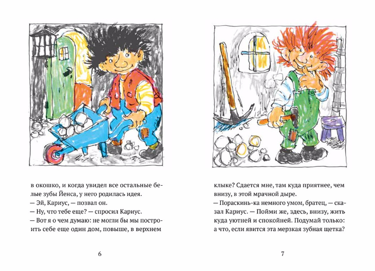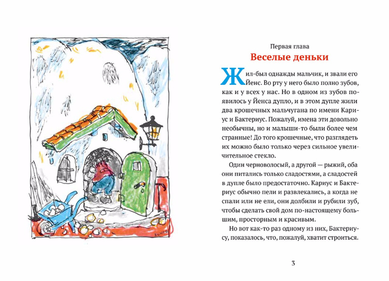 Эта история приключилась с мальчиком Йенсом, который обожал сладости, но очень не любил чистить зубы. Маленькие человечки построили два уютных дома у него во рту. Как вы думаете, каково было Йенсу?