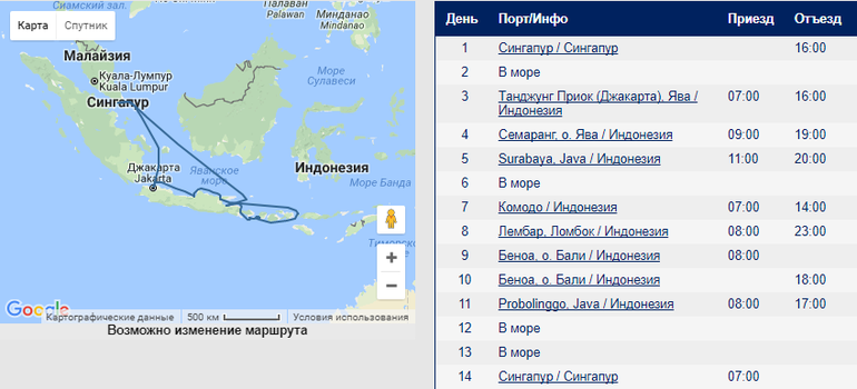 14 дней и 8 портов, плюс ночная стоянка на Бали!