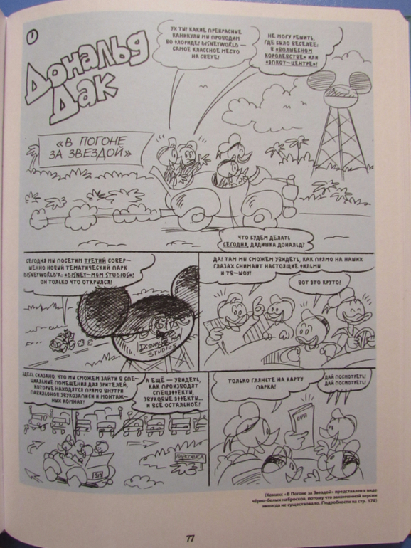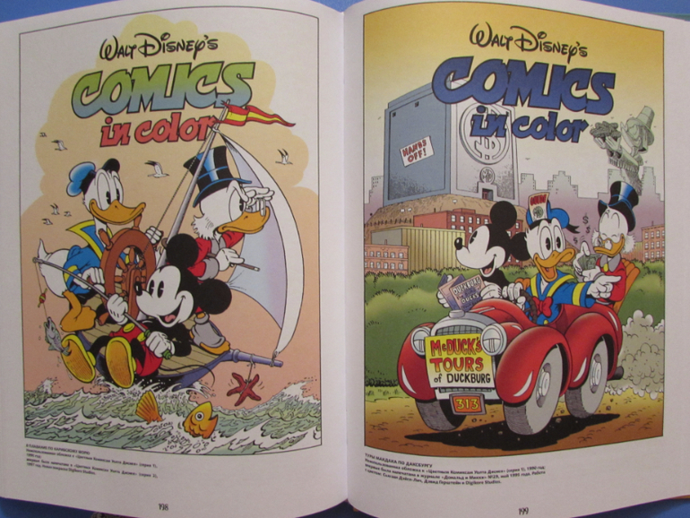 Практически все картинки в комиксах цветные. Кроме одной истории, которую Дон Росса начал рисовать по заказу компании Дисней - но не дорисовал, также по их просьбе.