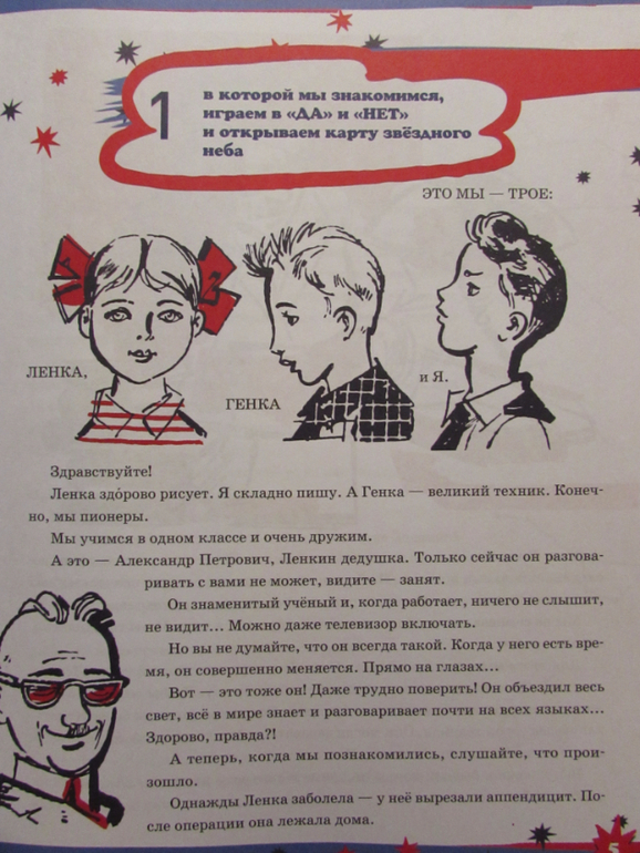 История начинается с того что два мальчика Витька и Генка приходят проведать заболевшую одноклассницу. С ней дома находится ее дедушка - крупный ученый, профессор.