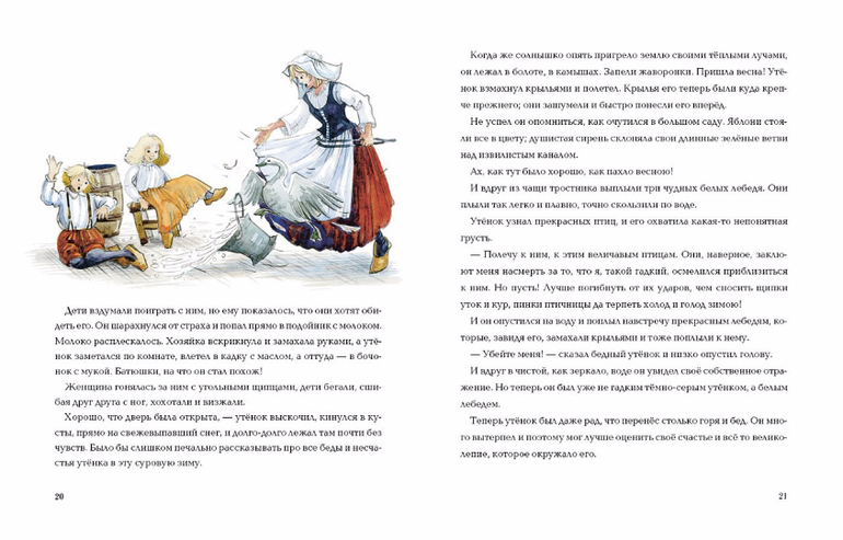 Сказка Г.Х. Андерсена о гадком утёнке, который превратился в прекрасного лебедя в данном издании представлена в классическом пересказе Анны Ганзен. Давно всеми любимая история обрела новую жизнь благодаря великолепным иллюстрациям талантливой художницы Алины Сканцевой. С этими рисунками книга выходит впервые.