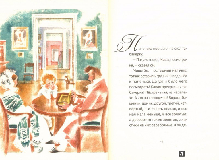 Владимир Фёдорович Одоевский, романтик и мистик, последний потомок старинного княжеского рода, одним из первых в России начал сочинять книги специально для детей. И самой волшебной из его сказок стала история о крошечном мирке, спрятанном внутри хитроумной табакерки, куда чудесным образом попадает мальчик Миша. Атмосфера чарующей тайны отражается и в изящных иллюстрациях Ники Георгиевны Гольц (1925-2012) - лёгких, прозрачных и словно летящих.