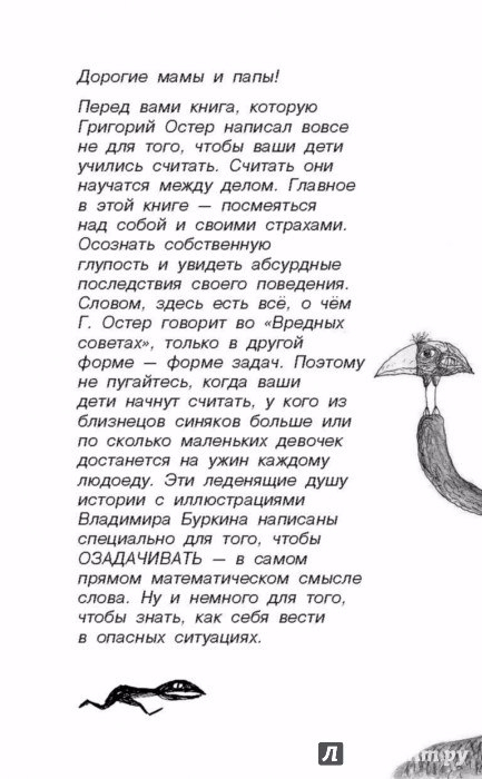 А вот совсем нескучные, жутко смешные и ужасно весёлые задачки про людоедов, про полуторагодовалого злодея Коленьку, про Мряку, Бряку, Хрямзика и Слюника и других не менее колоритных персонажей задачников Григория Остера решать интересно и очень полезно!