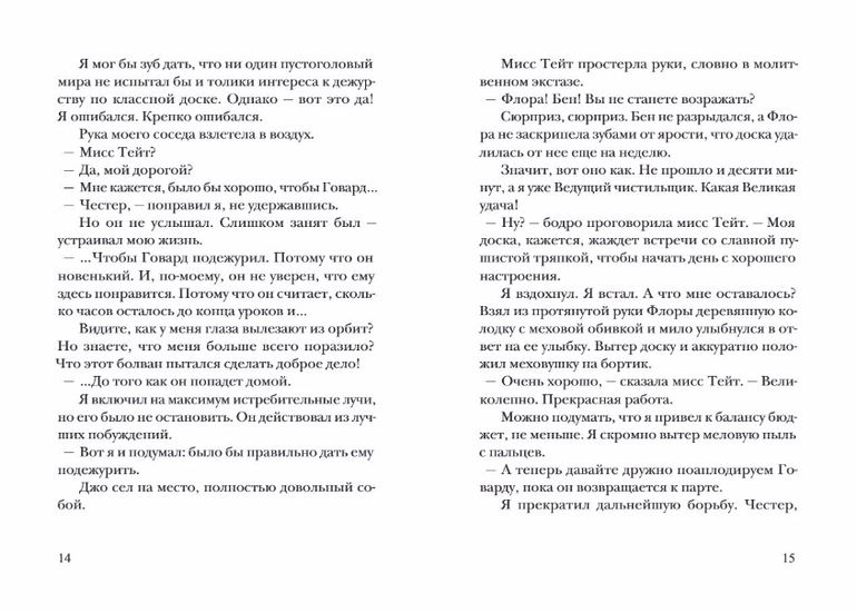 В новой школе, в которую попадает Честер, все такие хорошие и добрые, что саркастичному шалопаю, сменившему множество самых разных школ, сразу становится явно не по себе. У его соседа по парте Джо такой чудовищный почерк, что это единственное, в чем он всех превзошел. Неожиданно для себя Честер берется помочь однокласснику. Но Джо не так безнадежен - у него удивительные технические способности и он делает невероятные модели. Честер помогает Джо раскрыть для всех свой талант. И сам получает медаль. «Чтобы писать очень некрасиво (в стиле Джо, как курица лапой), вам понадобятся бумага - подойдет любой старый пожеванный листок - и ручка, которая оставляет пятна. Для работы найдите место покочковатей (подойдут скала или колени, но лучше автобус, потерявший управление)