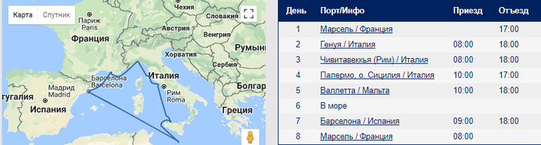 - с 9 по 16 декабря из Марселя на MSC Meraviglia;