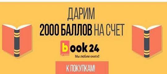 С 8 по 11 декабря все клиенты, прошедшие регистрацию на нашем сайте до 23.00 7 декабря, получат на бонусный счет 2000 дополнительных баллов в подарок от Book24. Этими баллами можно оплатить до 30% от стоимости любого заказа в нашем интернет-магазине и сделать покупку еще более выгодной.