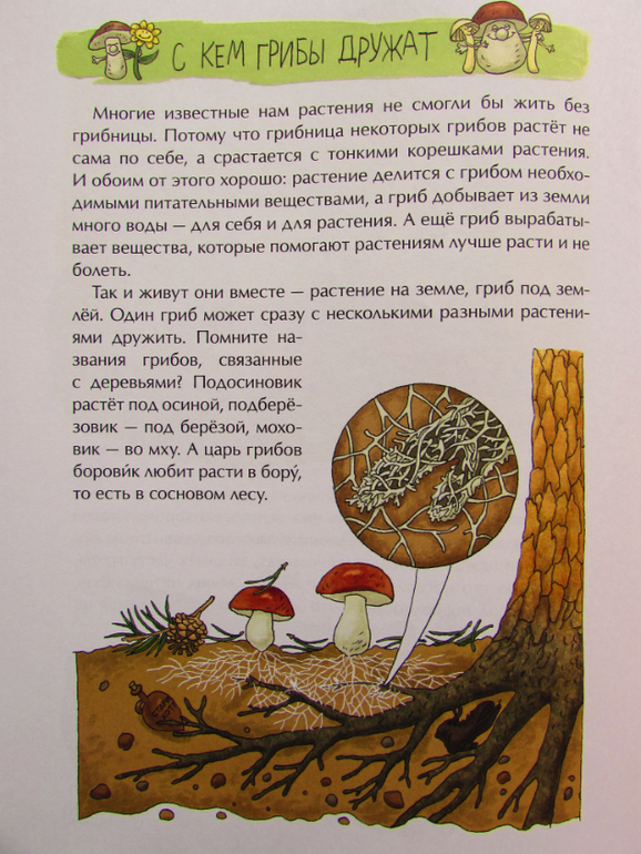 В книге рассказывается о том какие бывают грибы, что такое грибница, про симбиоз с растениями (подберезовик, подосиновик), про искусственное выращивание грибов, про «грибных людей», про трюфели - кажется в книге есть всевозможная информация о грибах!