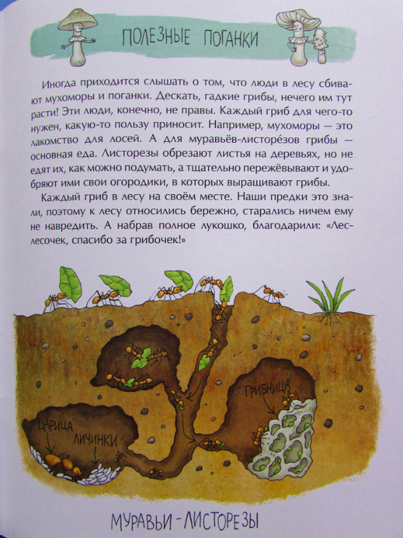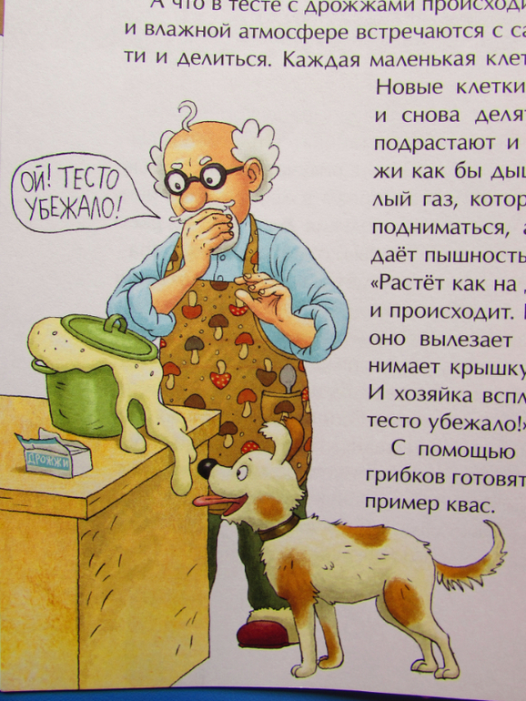 Книга рекомендована детям старше шести лет. Но мы с сыном выборочно прочитали книгу. Самые простые главы: про съедобное и несъедобное, про грибницу, про искусственное выращивание грибов. Рассказ про дрожи. плесень и кефирный гриб мы пропустили. Рановато, да и неинтересно еще будет мальчику.