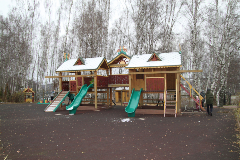 Насмотревшись и наобщавшись с животными, прошли к детской площадке
