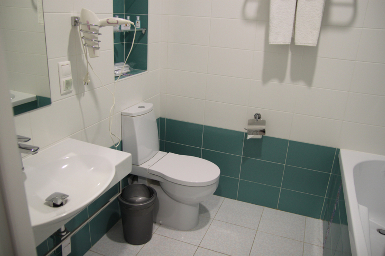 В номерах даже есть халаты и одноразовые тапочки, что для подмосковных отелей - редкость. В Ванной - шампуни, гели. Фен.