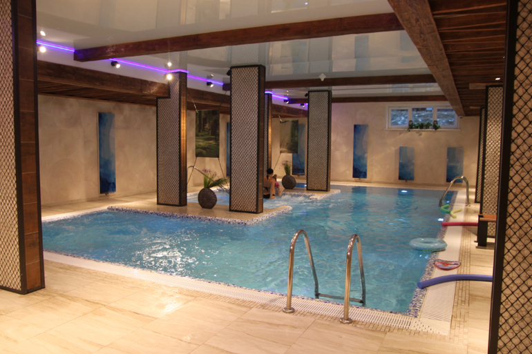 СПА состоит из не большого бассейна и гидромассажными струями, джакузи.