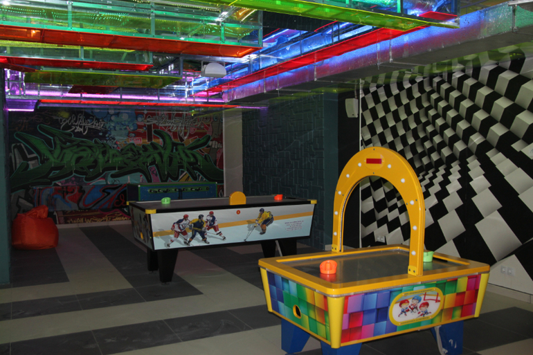 В основном здании находится так же ресторан Кандинский (в котором шведский стол), детский клуб, бассейн, СПА, тренажерный зал, соляная пещера. Т.е зимой и в непогоду очень актуально! С детьми не нужно переодеваться каждый раз!