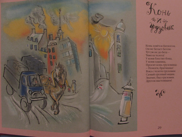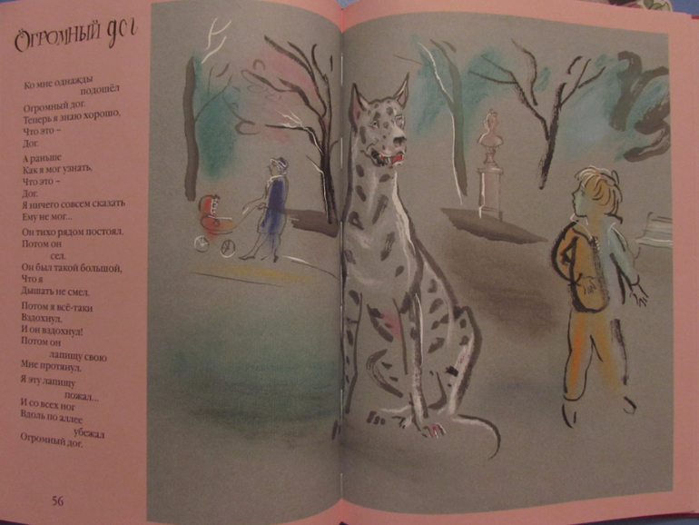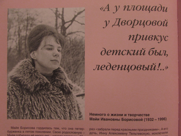 Стихотворения Майи Борисовой приглашают нас в Ленинград-Петербург идеального детства. Здесь можно кататься верхом на львах и поздороваться с огромным догом, поговорить с лошадью, погулять около «общего» для всей ребятни дедушки, пока родители не скажут, что пора домой.