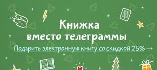 Читайте книги, дарите книги, меняйте мир. Отправьте волшебное письмо с поздравлением и электронной книжкой. Это почти так же душевно, как старая добрая открытка с телеграммой внутри. Скидка на все электронные книги — 25% до 14 января