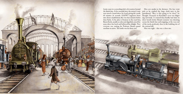 Действие происходит в середине XIX века. Вы найдете здесь конные повозки, старинную одежду, чинные походы в оперу, выставку первых фотографий и, конечно, захватывающую историю о строительстве первых паровозов, станций и железных дорог.