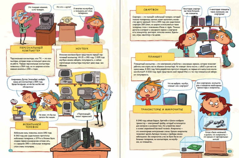 Познавательная книга о том, как появились не только важные изобретения в истории человечества, но и обычные предметы, которые мы используем в повседневной жизни. Вместе с героями книги юные исследователи отравятся на экскурсию, чтобы найти ответы на самые разные вопросы. Как бы мы жили, не будь, к примеру, пуговиц или непромокаемых плащей? А если бы так и не изобрели шариковую ручку? В нашем музее четыре зала, в первом собраны предметы, которые сделали нашу жизнь легче и комфортнее. Здесь вы узнаете о том, как появились ластики, пуговицы, чипсы, жвачка, йо-йо и др. Во втором - великие изобретения человечества: паровой двигатель, бумага, автомобиль, телескоп и др. Следующий зал отведен для устаревших и для самых абсурдных изобретений, будь то будильник на колёсах, гамак для ног и др. Ну и в последнем зале - лаборатория изобретателя! Здесь любой желающий сможет испытать свою смекалку и что-нибудь изобрести.