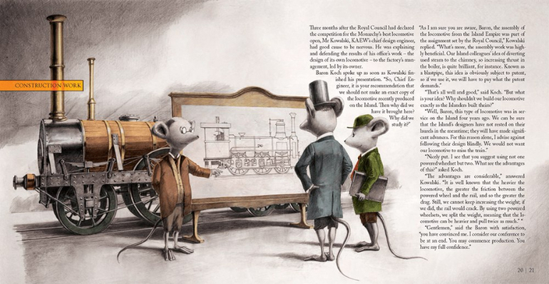 Объяснения технических моментов частично вплетены в ткань рассказа, частично вынесены в отдельные текстовые вставки и поясняющие иллюстрации. Из них вы узнаете про действие пара, принципы работы паровоза, изготовление колёсных пар, функции отдельных механизмов паровоза - например, котла, шатуна, автоматического воздушного тормоза, предохранительного клапана.
