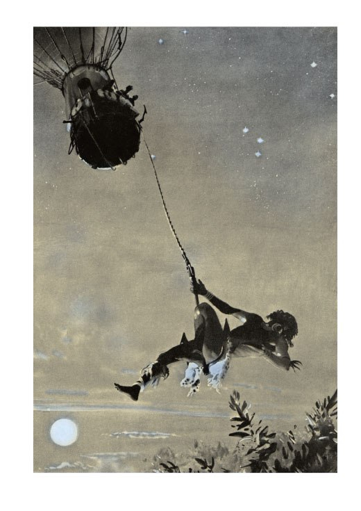 Герой романа «Пять недель на воздушном шаре» Самюель Фергюссон совершает удивительный и рискованный полет на фантастическом изобретении, управ ляемом воздушном шаре «Виктория», над неизведанными территориями Центральной Африки.