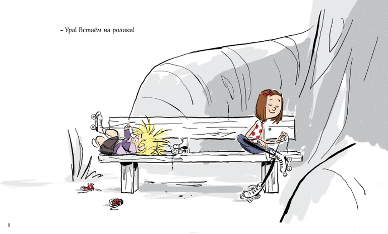 ЗНАКОМЬТЕСЬ! ЭТО БИНК И ГОЛЛИ - друзья не разлей вода! Одна совсем маленького роста, другая - дылда, но обе ужасно смешные и частенько хотят подкрепиться: одна обожает ореховое маслице (это Бинк), другая печёт оладьи (это Голли, но она всегда щедро делится с подругой). Эта парочка - любительницы роликов и приключений, в которые они пускаются очертя голову. Но куда бы ни прикатили их ролики, Бинк и Голли всегда останутся лучшими друзьями.