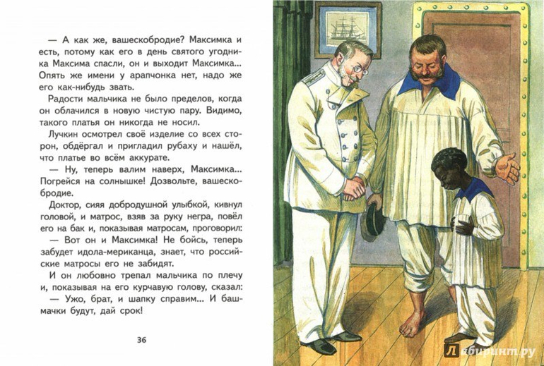 Рассказ Константина Михайловича Станюковича "Максимка" - история трогательной дружбы матроса военного парового клипера "Забияка" Ивана Лучкина и мозамбикского мальчика с американского брига "Бетси", которого моряки подобрали в открытом море и назвали Максимкой Забиякиным.