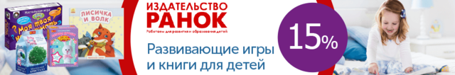 в течение января дарим скидку 15% на учебно-методическую и детскую литературу издательства Ранок, а также на наборы для творчества торговой марки Ranok Creative!