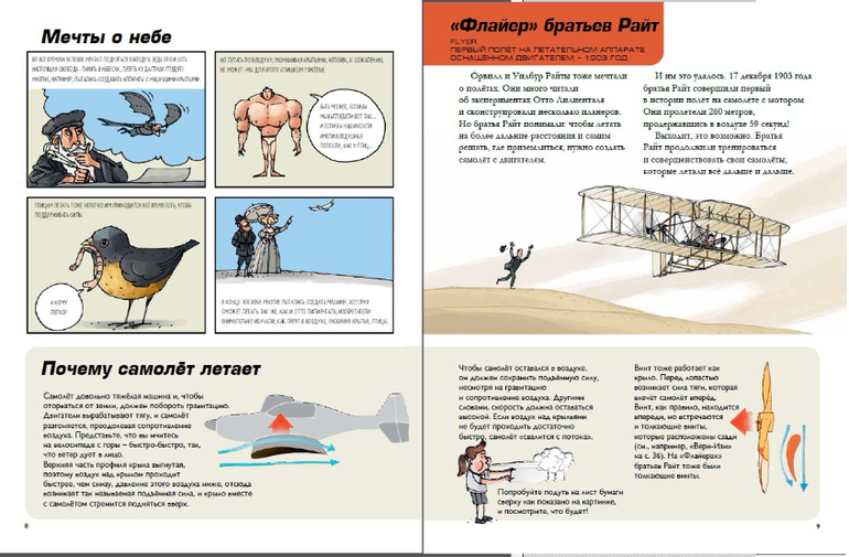 Многие с детства мечтают о небе. И некоторым удаётся взлететь! Эта книга расскажет вам об удивительных летающих машинах и их создателях, бесстрашно отправлявшихся в заоблачные выси и двигавших прогресс вперёд. Вы увидите, как менялись самолёты: от первого планера до невероятных машин будущего, способных летать на солнечной энергии. Для всех, кто интересуется самолётами и мечтает летать!