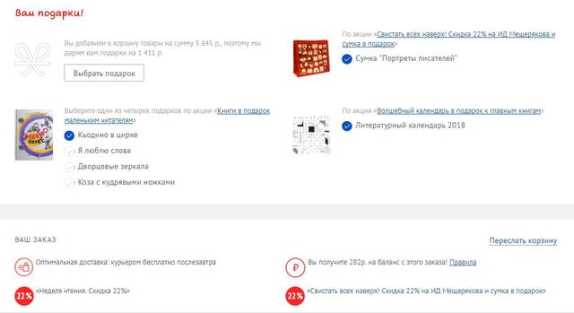Учитывая, что по 28 января идёт Неделя чтения , практически все книги в каталоге "Главные книги" со скидкой 18-22% + Ваша накопительная без всяких промокодов.