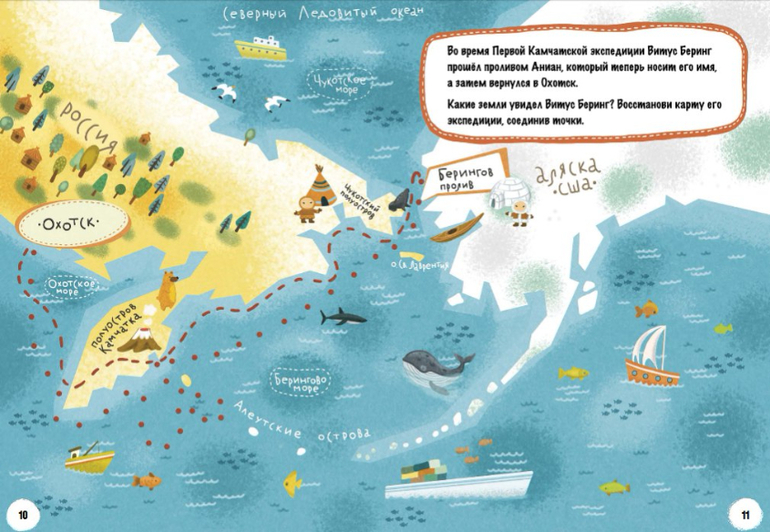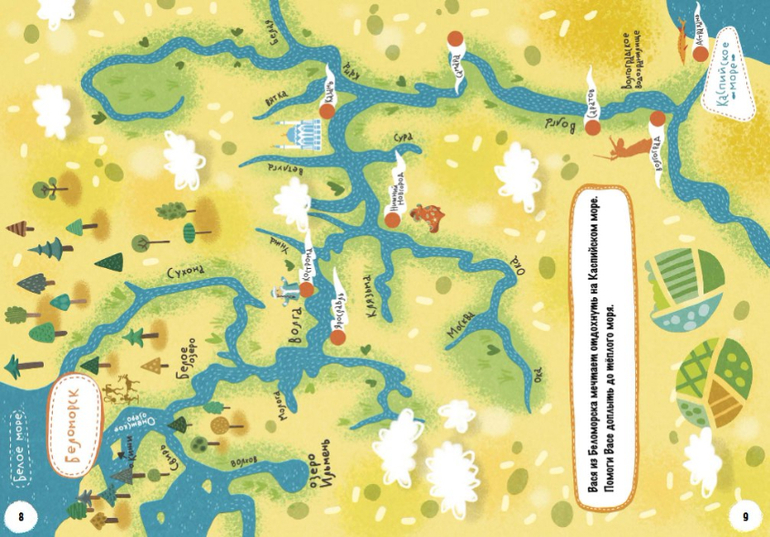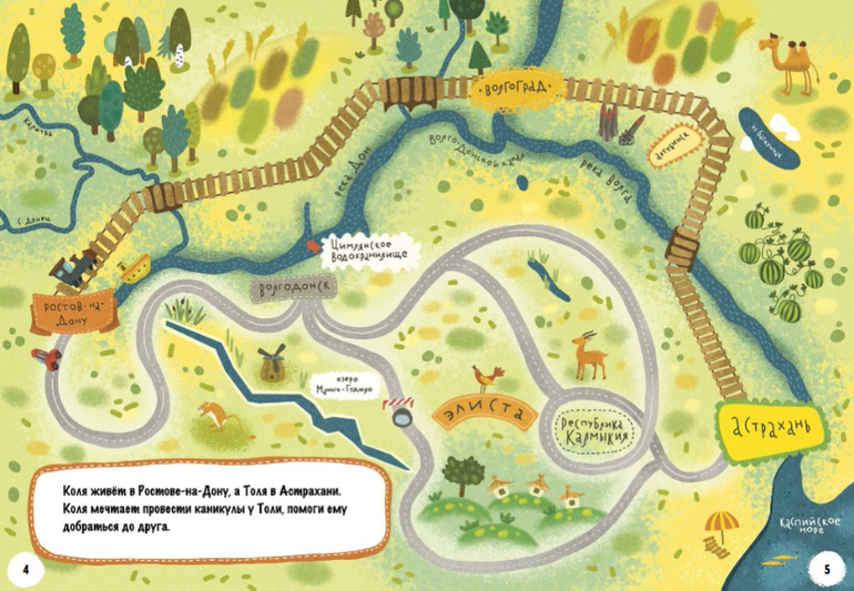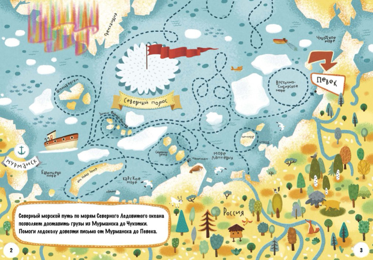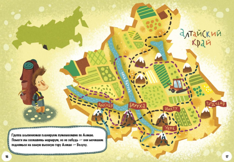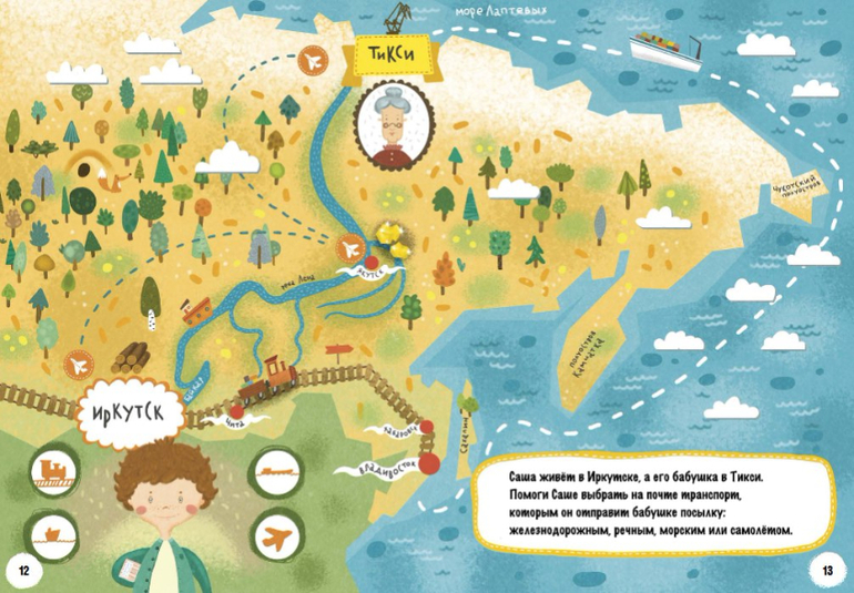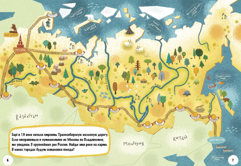 Сборник занимательных карт-лабиринтов поможет ребёнку в игровой форме познакомиться с географией самой большой страны мира - России, совершив увлекательное путешествие по её городам, рекам и горам. Путешественникам предстоит пройти по Северному морскому пути, проехать на поезде из Москвы до Владивостока, сплавиться по рекам и каналам из Белого моря в Каспийское, не заблудиться в Алтайских горах, проложить недостроенную Кругобайкальскую железную дорогу, заново открыть Берингов пролив.